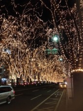 宴もたけなわの頃、運が良ければ観られるかもといわれた「2013SENDAI光のページェント」定禅寺通りのライトアップリハーサルに遭遇。