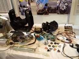 ムービングライトを分解、機構を展示紹介。