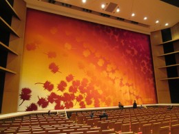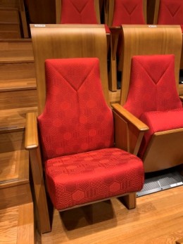 緞帳と客席のシートは赤をメインテーマカラーとして、色鮮やかに表現されています。